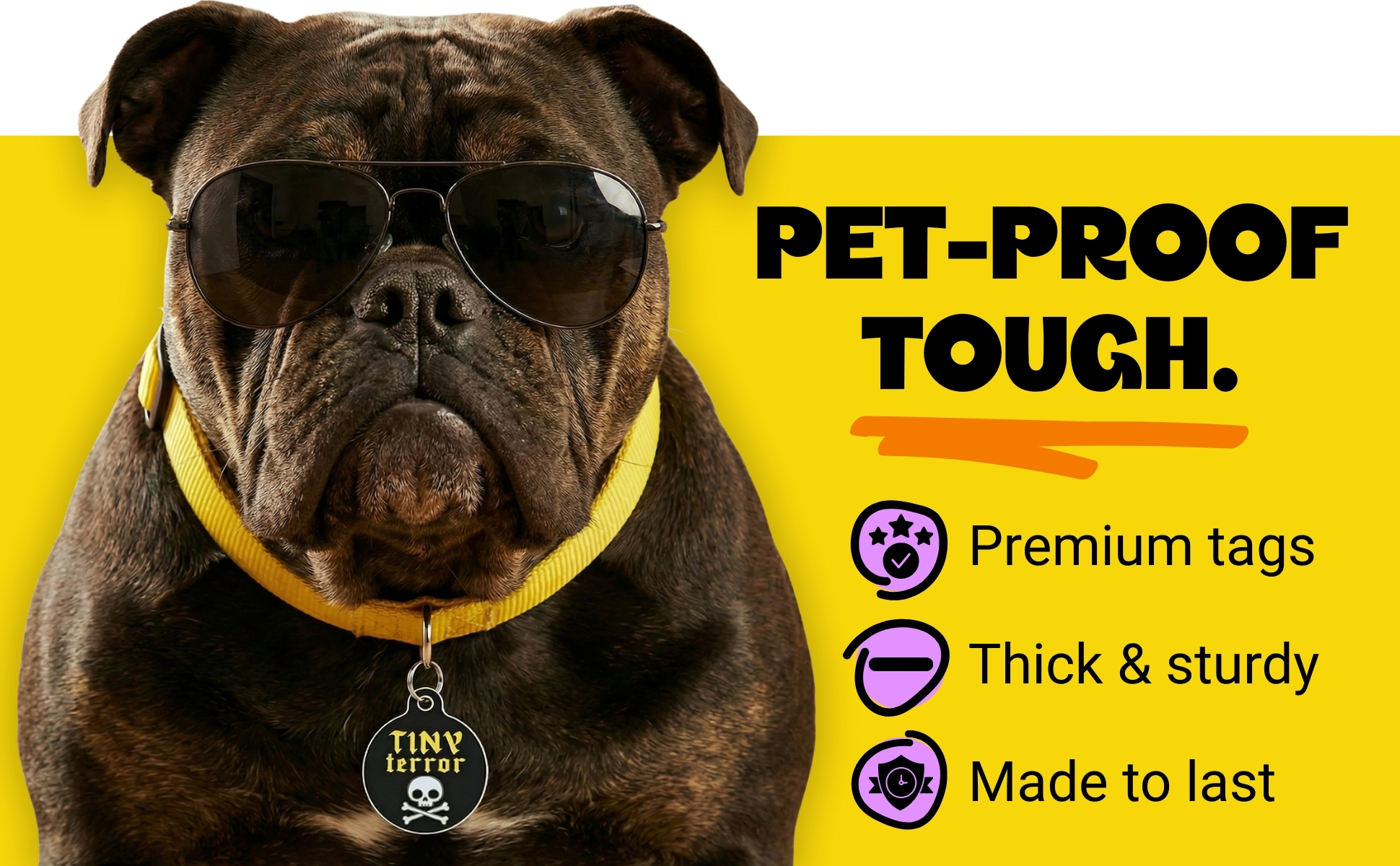 Our game? Top-notch pet tags paired with killer customer service, making snagging a tag for your furry sidekick an absolute blast. 'Cause let's face it, our dogs deserve cool stuff too!